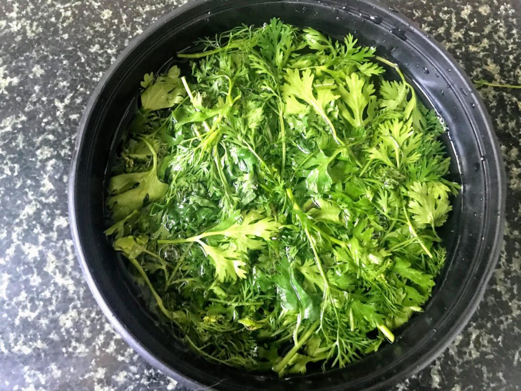 • Keeping the coriander leaves soaked in water will help in getting rid of the sand particles stuck to the leaves
